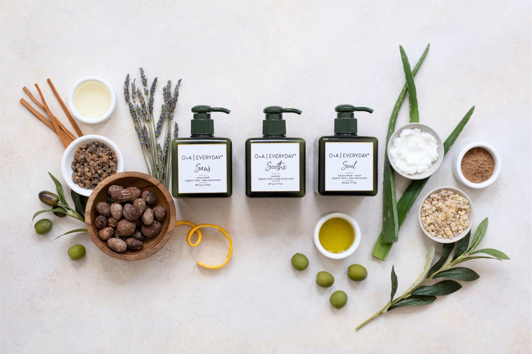 Incorporate O+A|EVERYDAY® into your morning and evening self-care routine. Its daily application aids in healing minor skin irritations and softening your body from head-to-toe. Awaken your senses and indulge in pure, natural skin care.